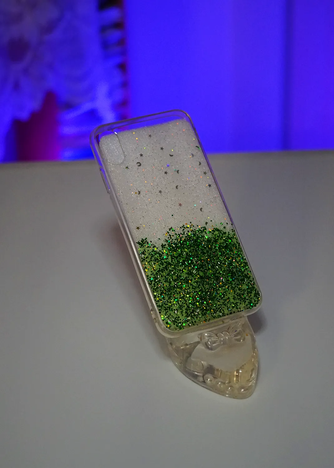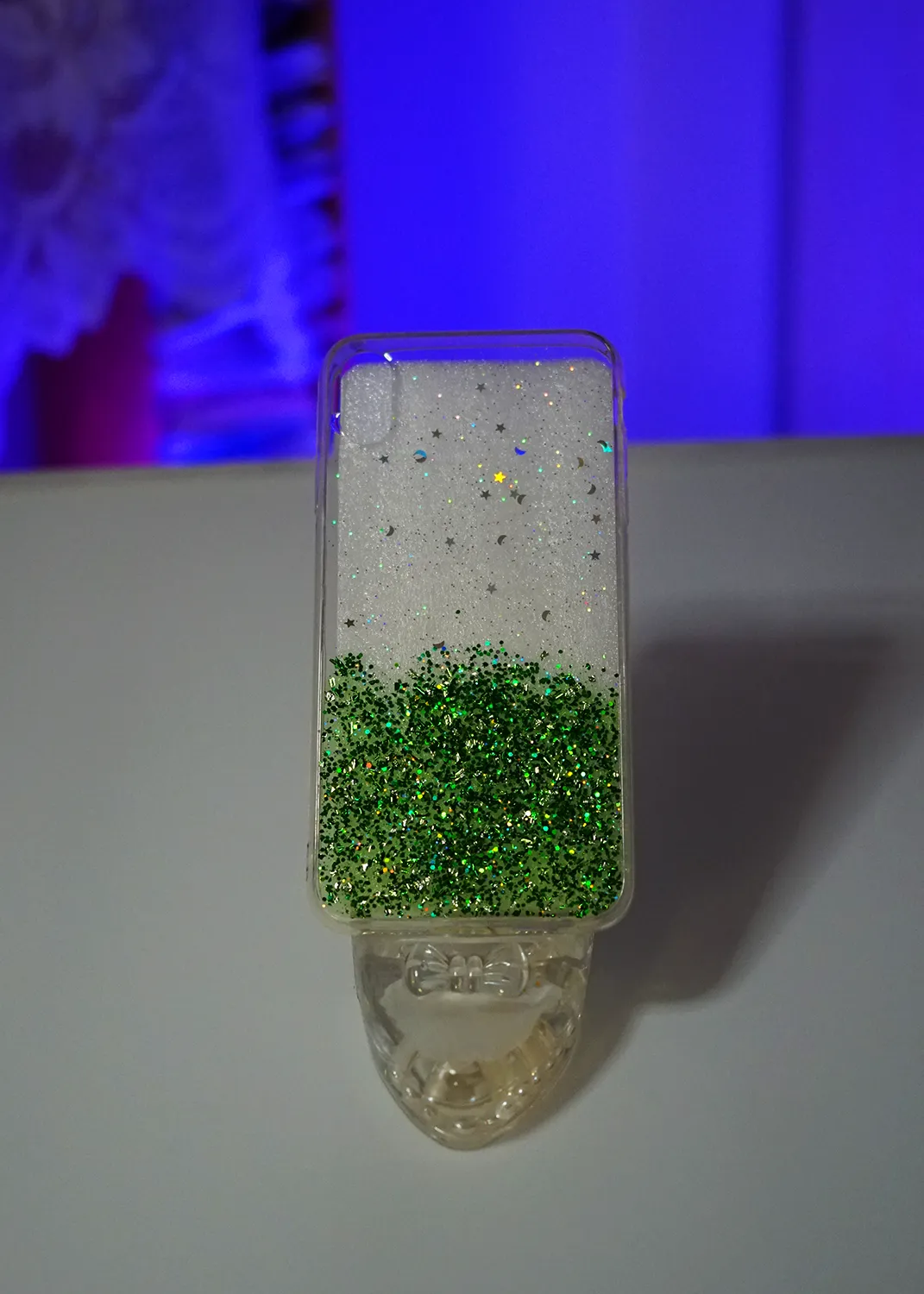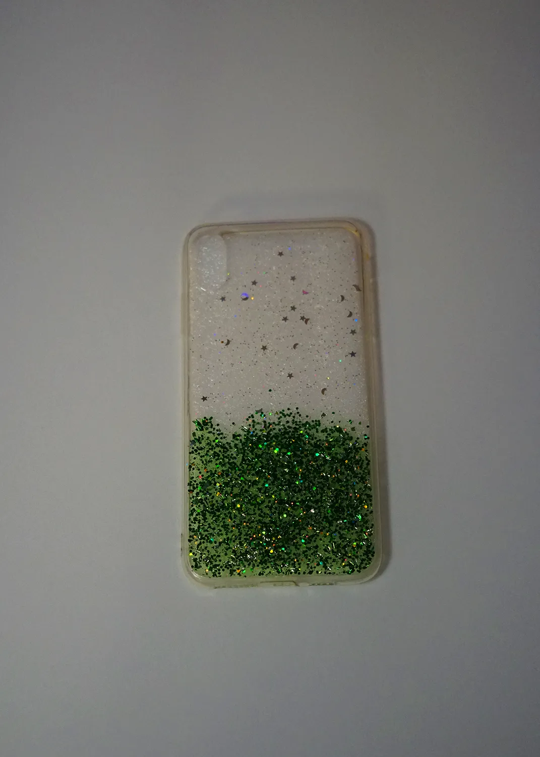 Apple iPhone XS Max Yeşil Simli Şeffaf Silikon Kapak