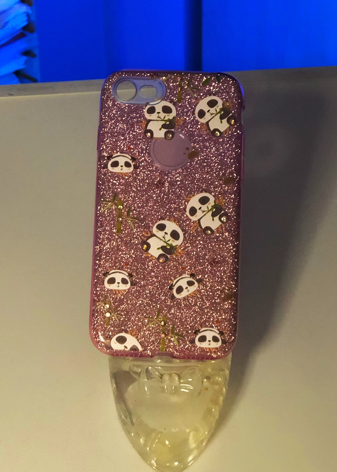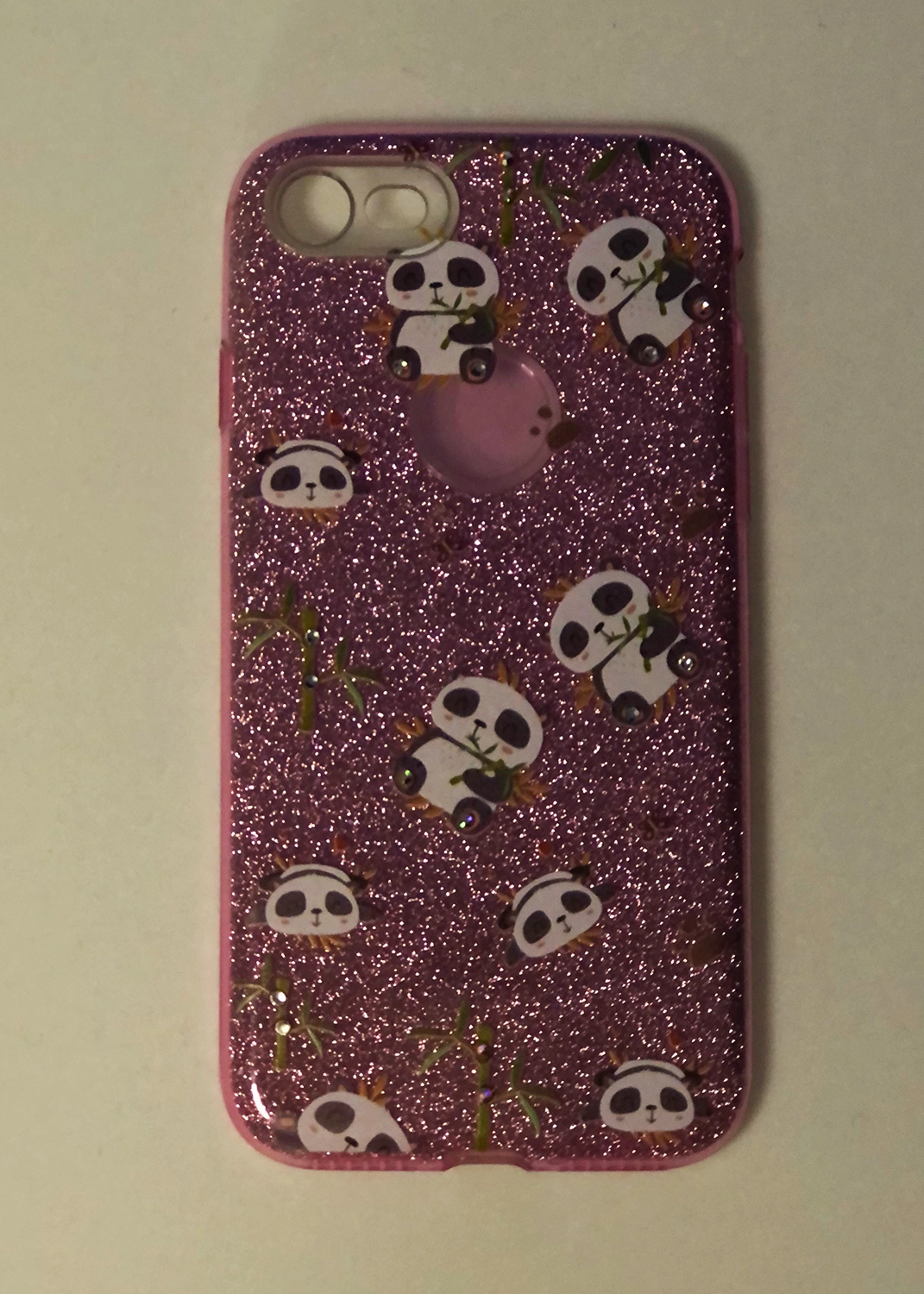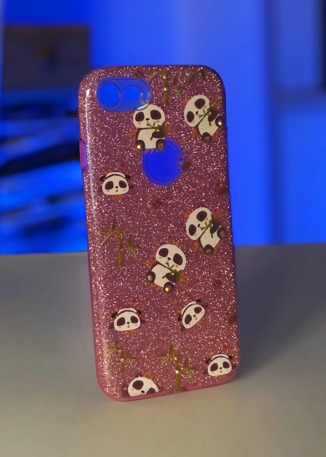 Apple iPhone 7 / 8 / SE 2020 / SE 2022 Pembe Simli Panda Figürlü Telefon Kılıfı