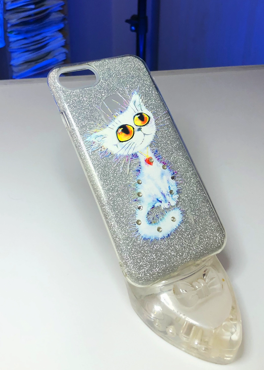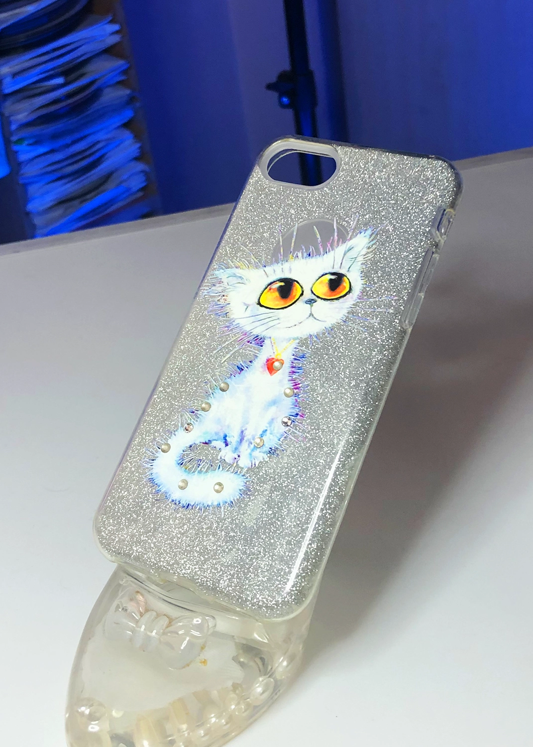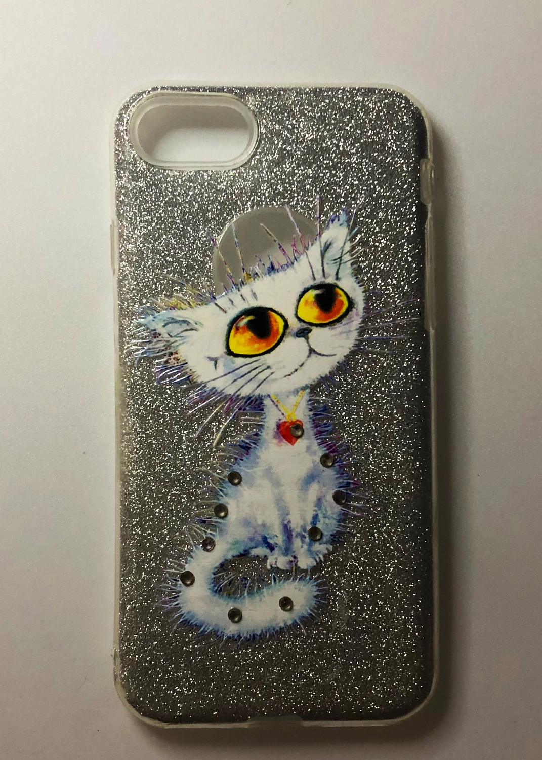 Apple iPhone 7 / 8 / SE (2020) Uyumlu Gümüş Glitter Sevimli Kedi Temalı Kılıf