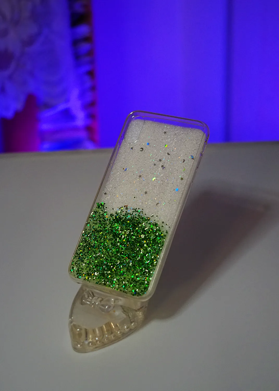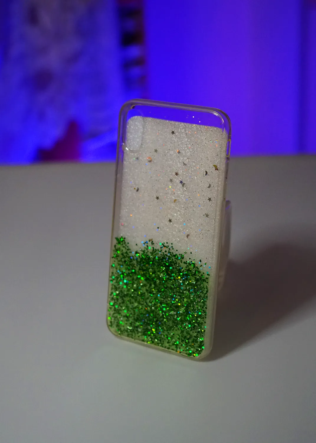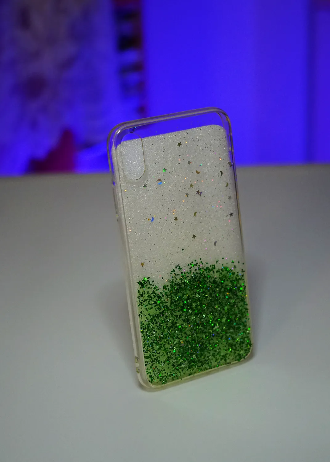 Apple iPhone XS Max Yeşil Simli Şeffaf Silikon Kapak