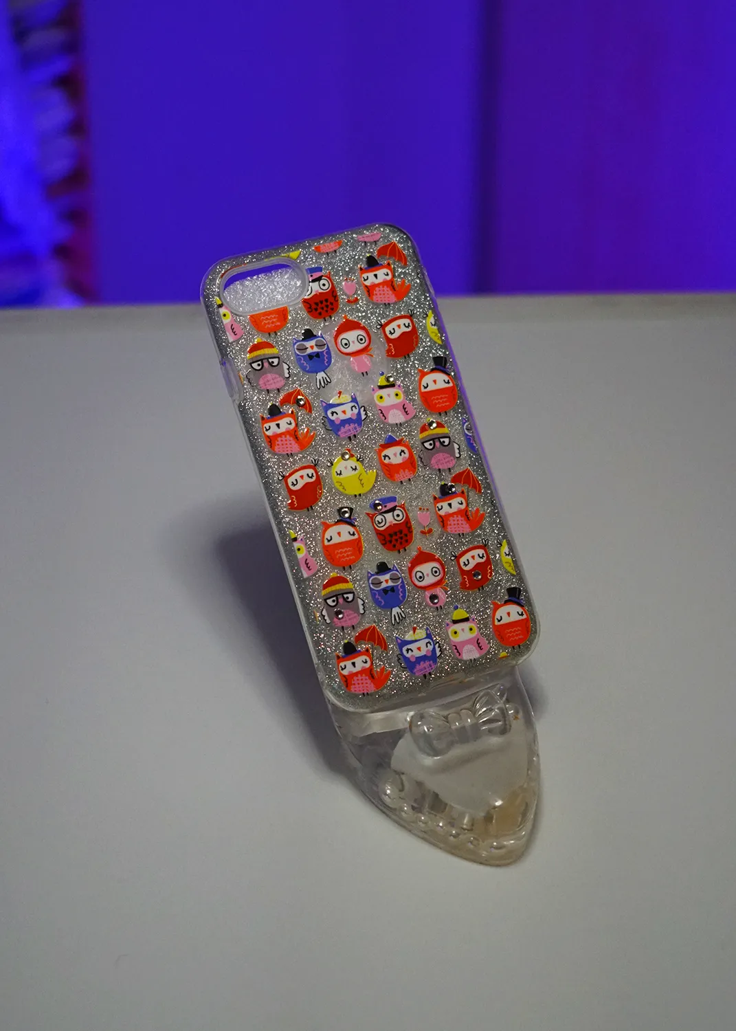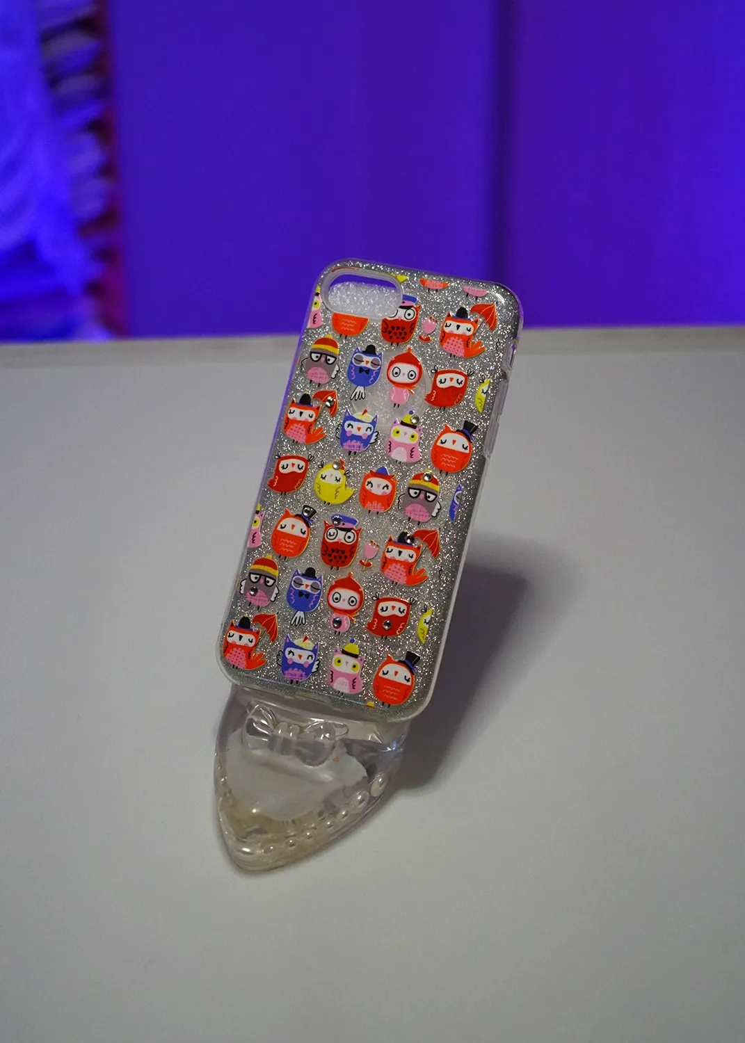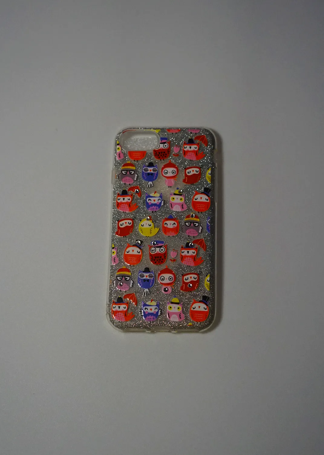 Apple iPhone 8 Simli Şeffaf Baykuş Stickerlı Kılıf