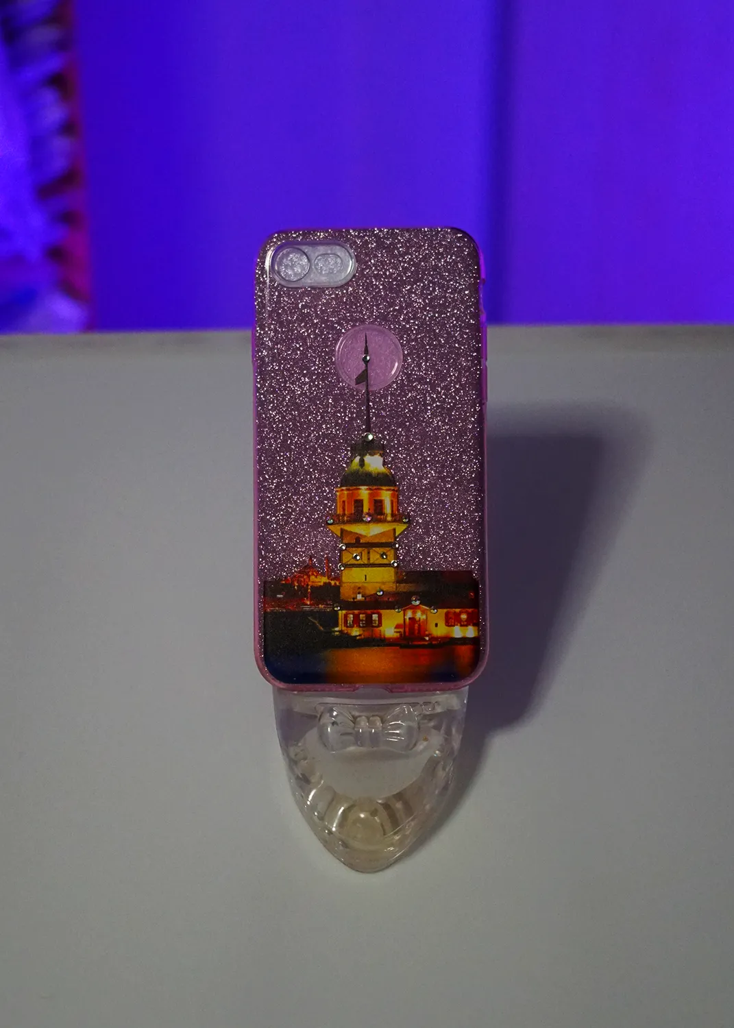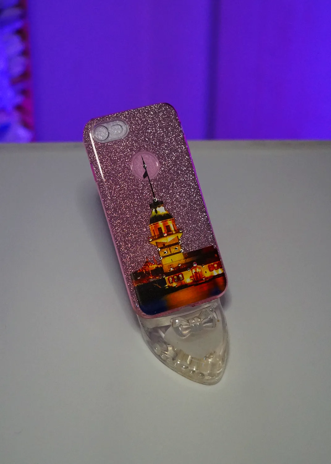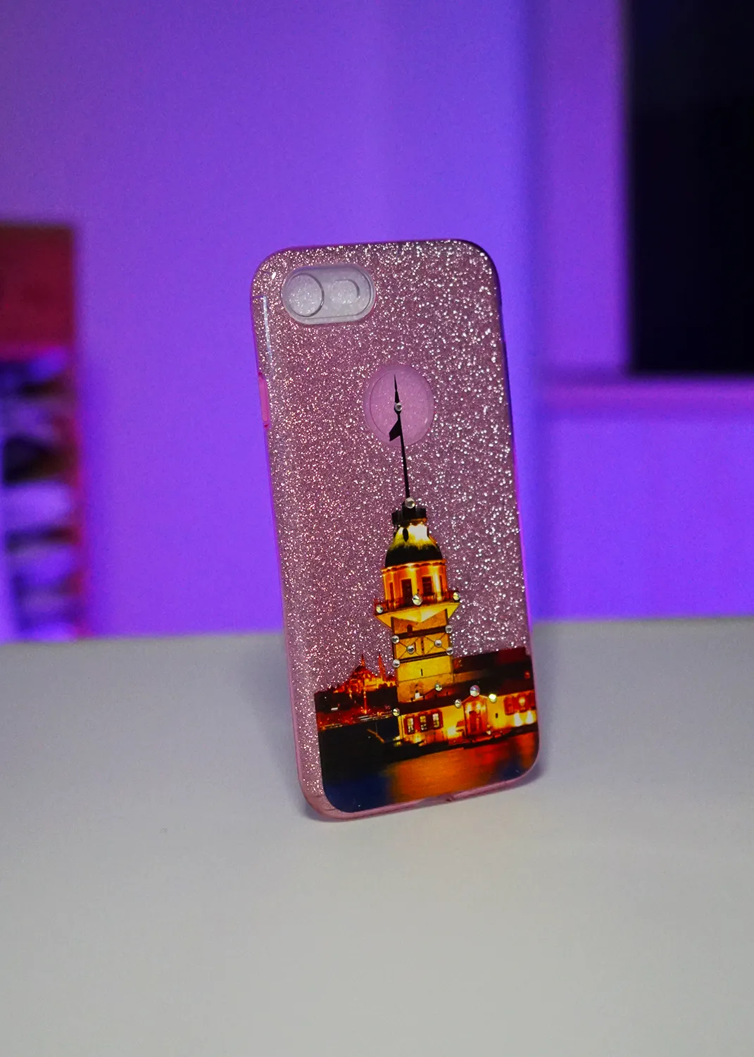 Apple iPhone 8 için özel tasarlanan pembe simli parlayan Kız Kulesi desenli silikon kılıf, telefonunuza estetik bir görünüm kazandırırken darbe ve çizilmelere karşı güçlü koruma sağlar. Esnek silikon yapısı sayesinde kolay takılıp çıkarılır ve elinizde kayma yapmaz. Hem şık hem de dayanıklı bir kullanım sunar.