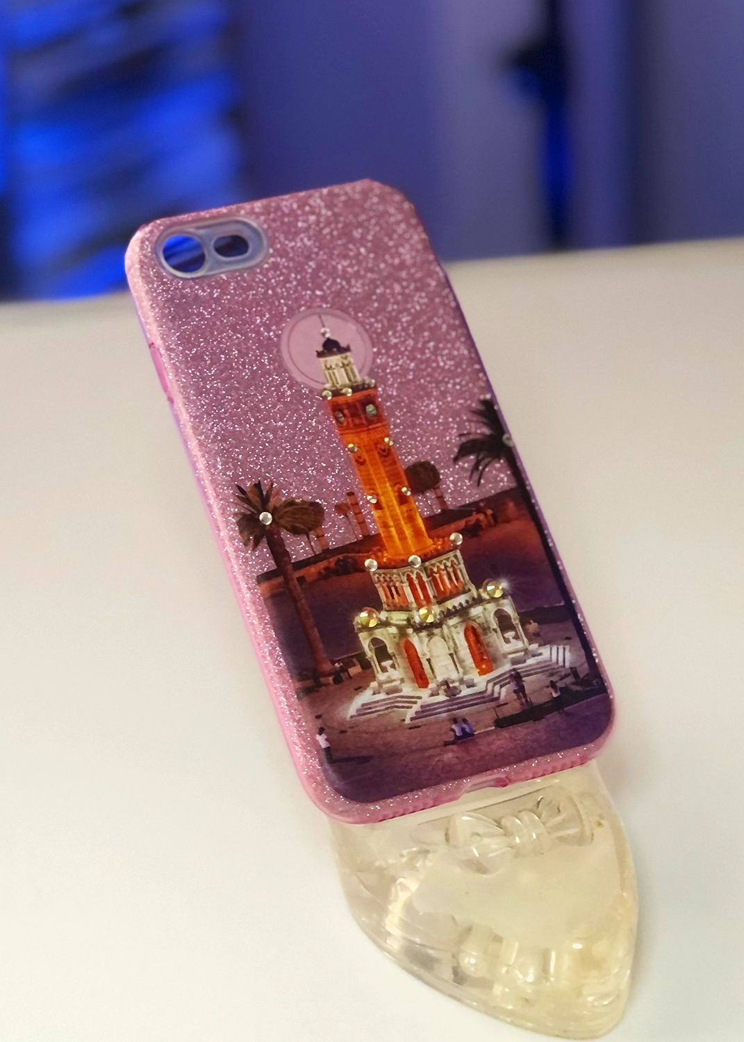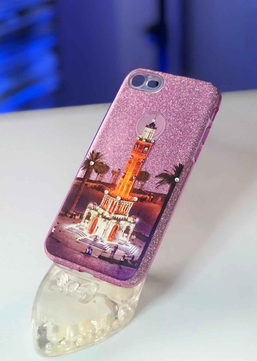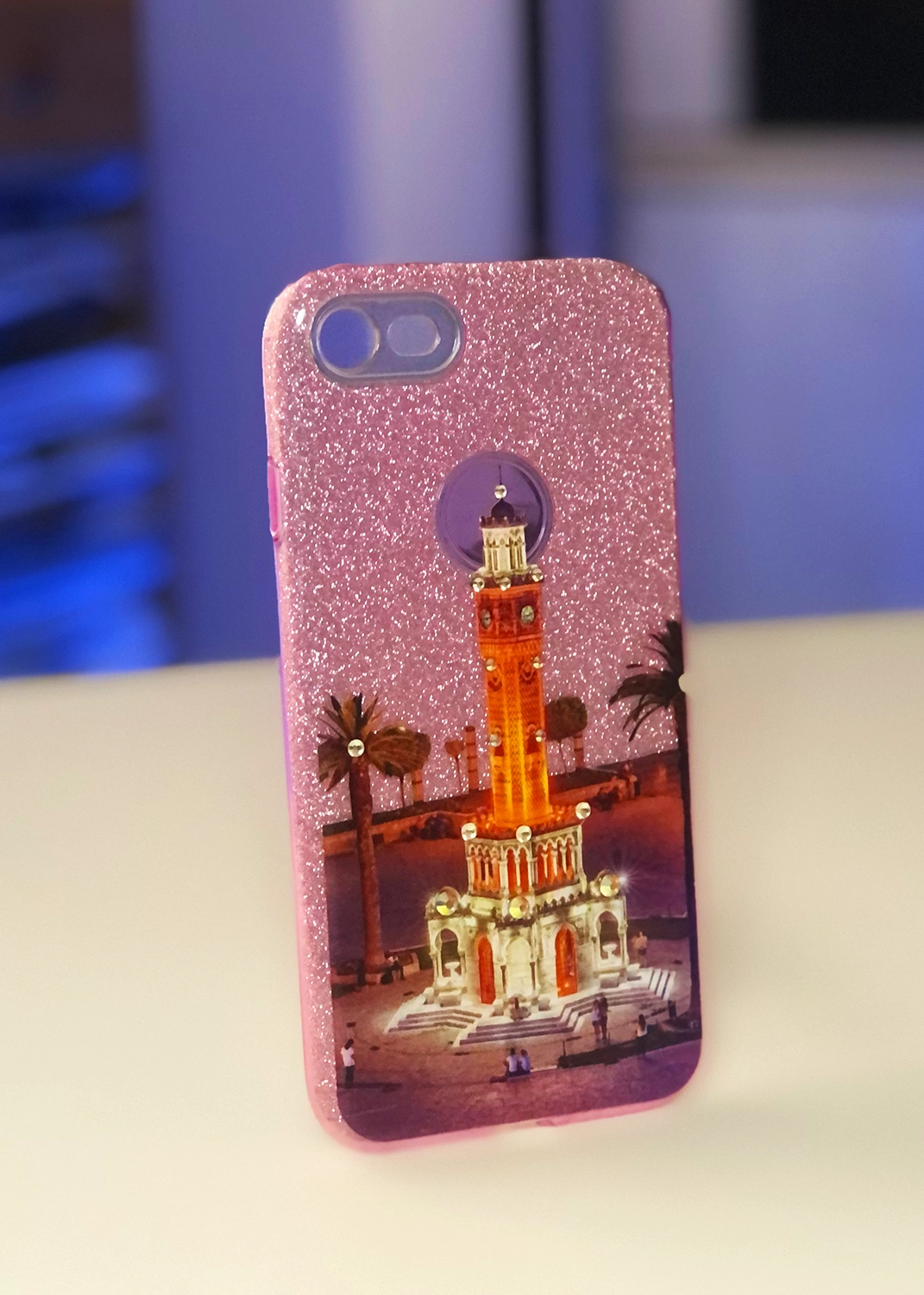 Bu hizmeti yakında sunacağız.Bu göz alıcı pembe glitter kılıf, saat kulesi ve palmiye desenleriyle şık bir görünüm sunar. Taş detaylarıyla süslenmiş, dayanıklı ve hafif yapısı iPhone'unuzu korur. iPhone 6, 7 ve 8 (4.7 inç) ile uyumludur. Stoklar sınırlı, hemen sipariş verin!